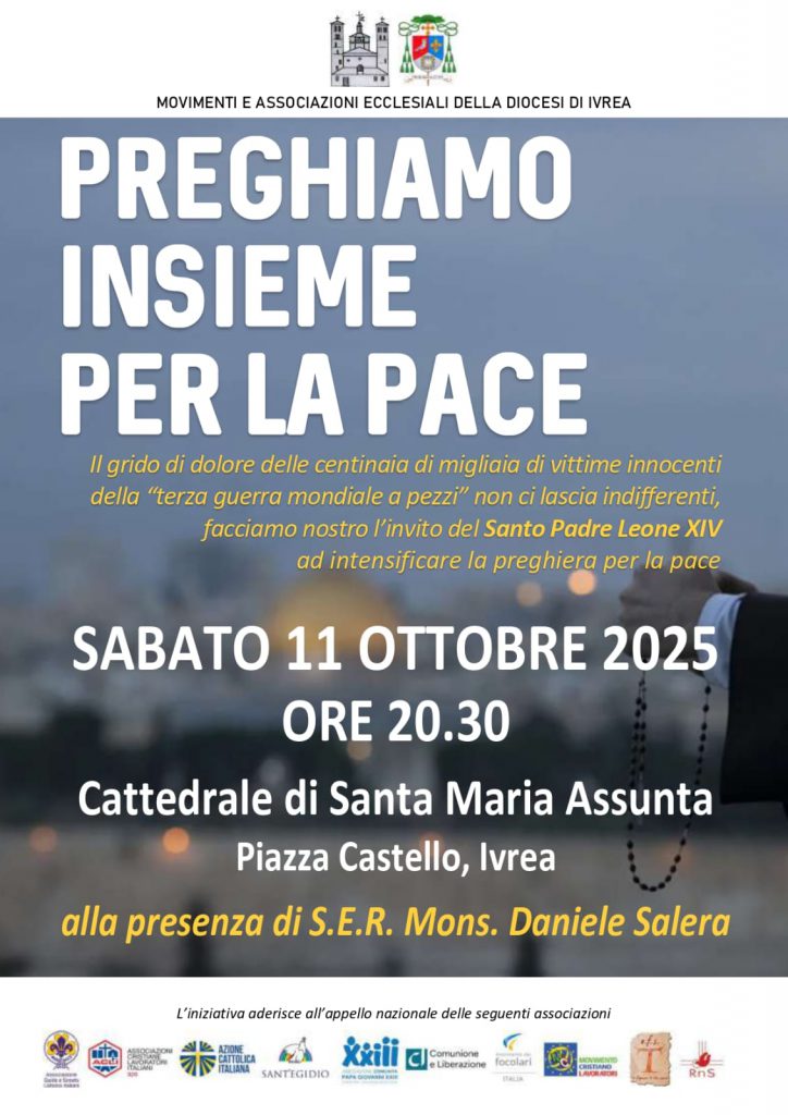 In un tempo dove si moltiplicano i conflitti armati e si palesa sempre più essere in corso quella che Papa Francesco definì “la terza guerra mondiale a pezzi”, movimenti e associazioni ecclesiali della Diocesi di Ivrea aderiscono all’iniziativa Nazionale organizzando una serata di preghiera per la pace.