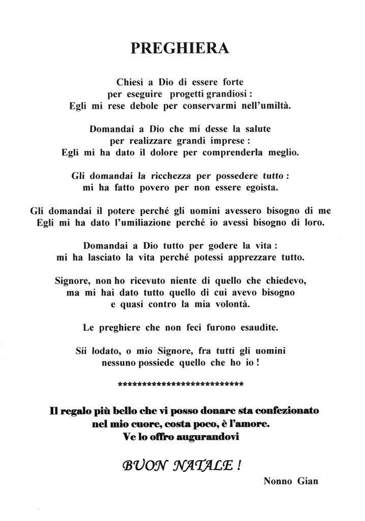 Prima di iniziare è stata letta la preghiera che ogni anno Nonno Gian ci invia e che merita d’essere letta e riletta ogni giorno!