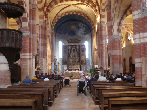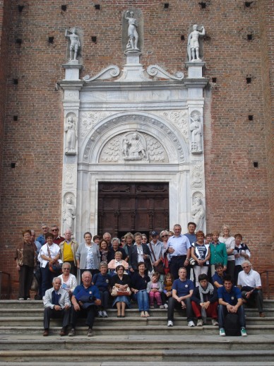 Domenica 16 settembre l’UNITALSI Ivrea ha organizzato una gita/pellegrinaggio all’Abazzia di Nostra Signora di Staffarda a Revello, in provincia di Cuneo. Accolti dalla Sottosezione di Saluzzo, la giornata del gruppo composto da circa 50 persone è iniziata con la Messa presso la Collegiata di Revello, splendida Basilica edificata nel XV secolo. La Basilica è di pianta latina con tre navate. All’Altare una splendida statua della Vergine Maria e ai lati numerosissimi polittici di autori vari, tutti datati tra il XV e il XVI secolo. Subito dopo il gruppo si è recato a visitare la Cappella Marchionale nel Municipio prima di procedere presso la Bocciofila per il pranzo.