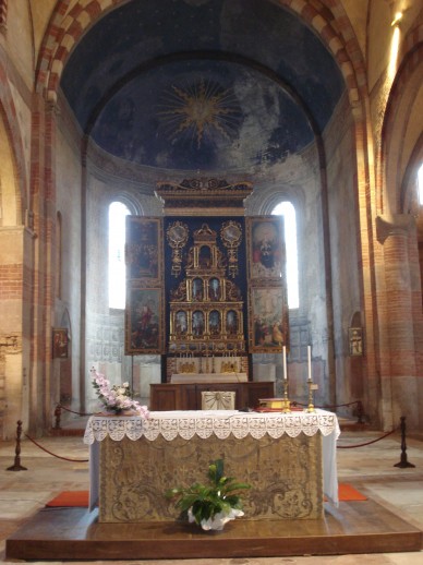 Nonostante il notevole aumento di peso corporeo per le più che abbondanti libagioni, il bus è riuscito a trasportarci alla Basilica di Staffarda, dove la guida Giorgio ci aspettava per illustrarci la storia e le bellezze del luogo. Facile dire che tutti siamo rimasti a bocca aperta per lo splendore della Abazzia.