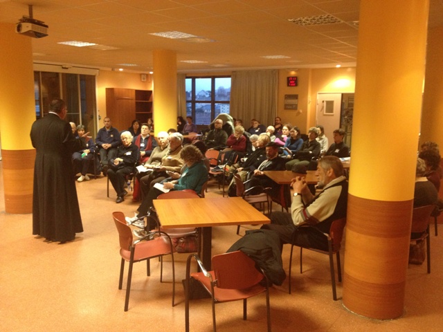 Nel pomeriggio l’acqua ha continuato a cadere tanto da consigliarci di vivere il rito della Via Crucis nel caldo del settimo piano del Salus.