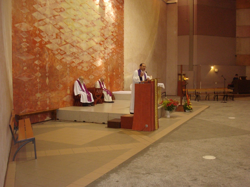 Via crucis pellegrini e poi Messa del Pellegrinaggio(sempre con la Sezione ligure), in attesa dell’arrivo di Mons. Cerrato, giusto in tempo per benedire le tavole del sesto piano del Salue e a partecipare alla festa di tutte e due i pellegrinaggi al salone del piano 0.