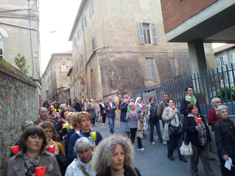 Durante il percorso è stato recitato il Santo Rosario arricchito dalle meditazioni e dai bei canti mariani delle suore della Fraternità di Nazaret.