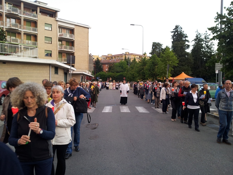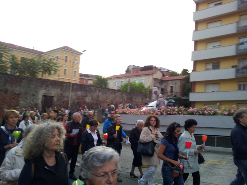 Si è svolta ieri sera, sabato 31 Maggio 2014, ad Ivrea la fiaccolata di chiusura del mese mariano. La serata ha avuto inizio in Duomo alle ore 20 con una breve preghiera comunitaria guidata dal Vescovo Mons. Cerrato. Da lì è iniziata la solenne processione con le fiaccole che ha riportato la statua della Madonna Pellegrina al Monte Stella. La statua era stata portata nella giornata di giovedì presso la chiesa di San Salvatore in Ivrea dove è stata esposta per la preghiera personale e da lì trasferita nella giornata di sabato in Cattedrale.
