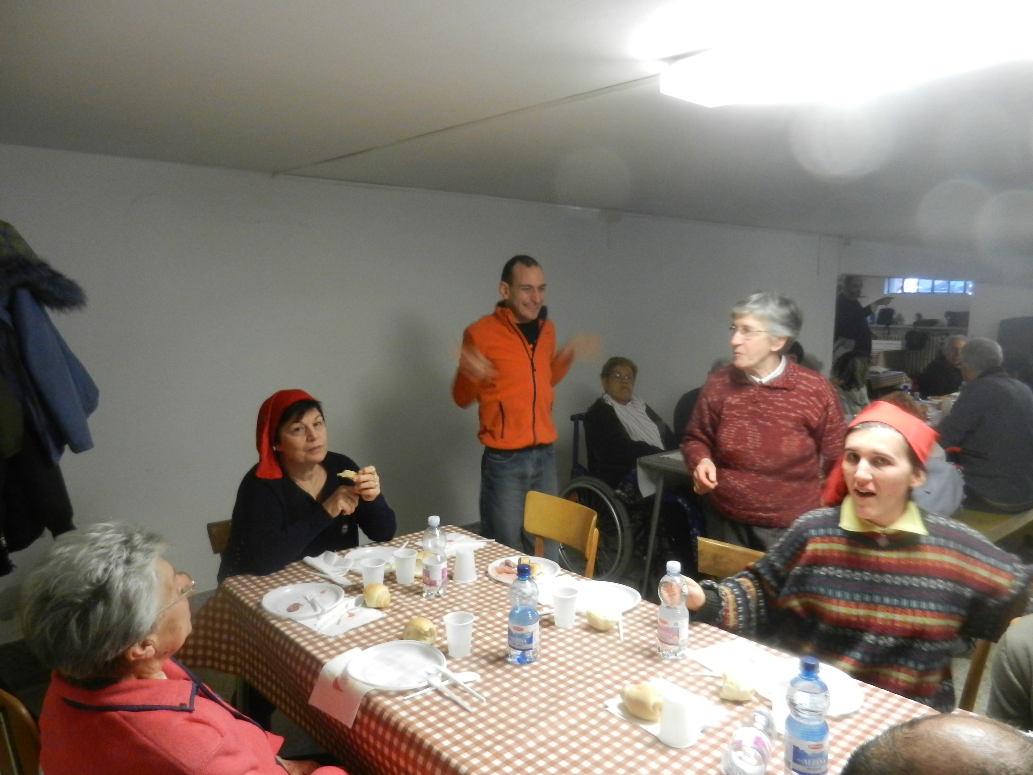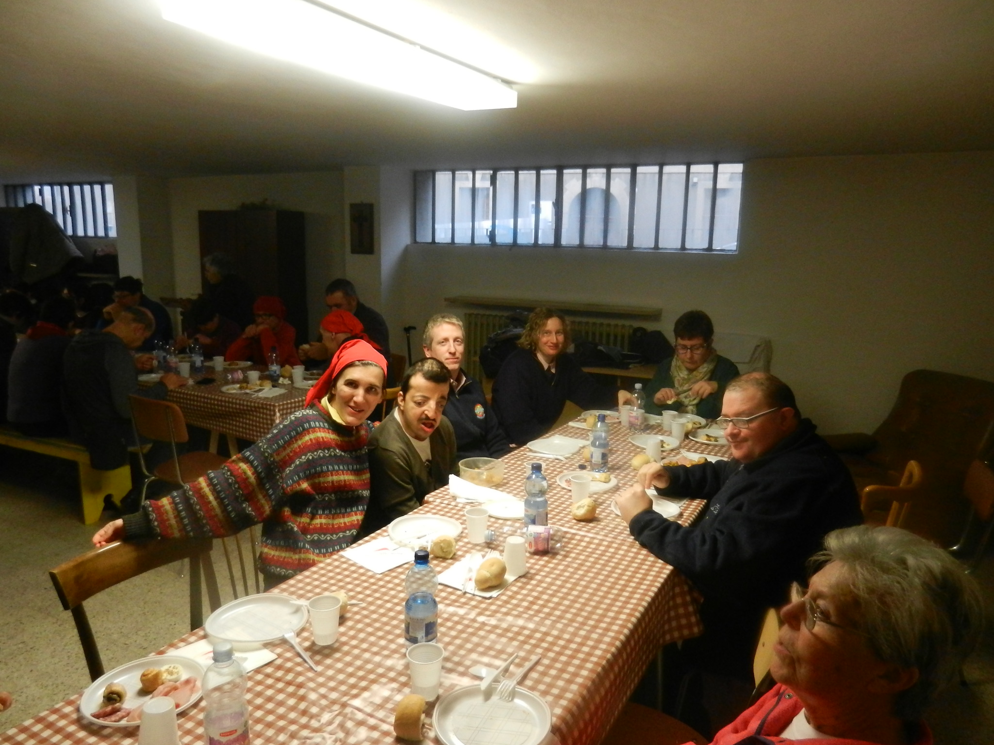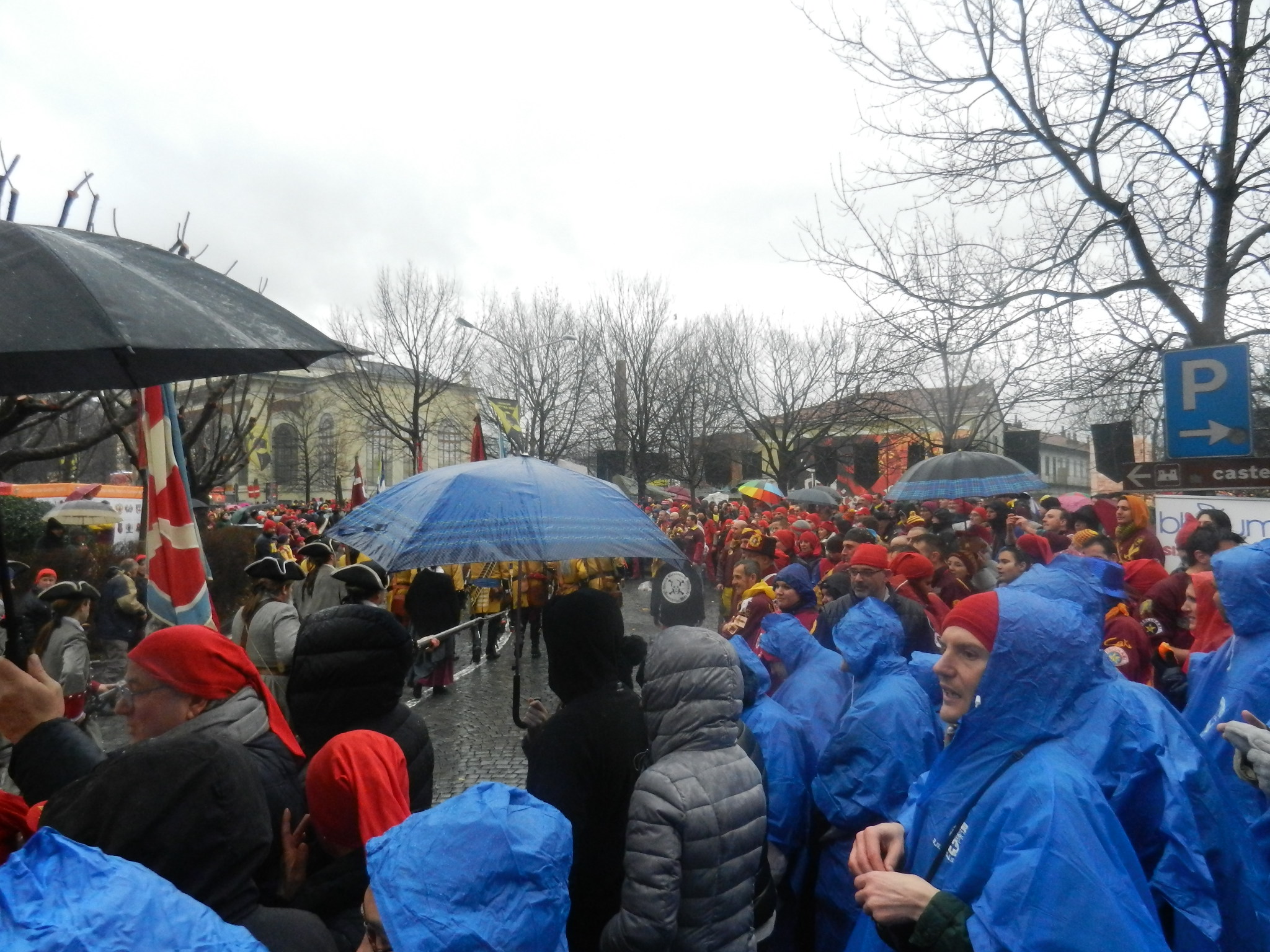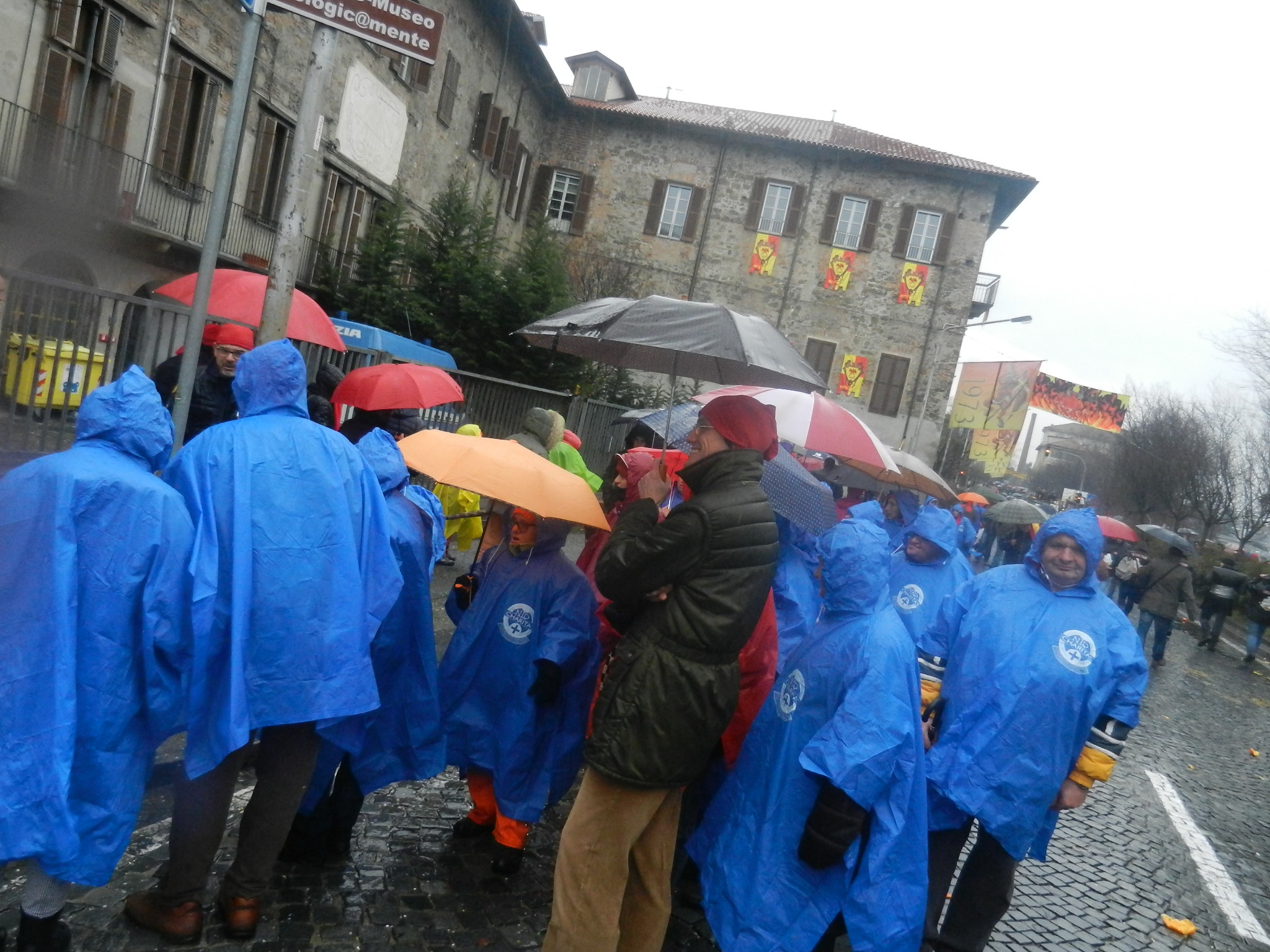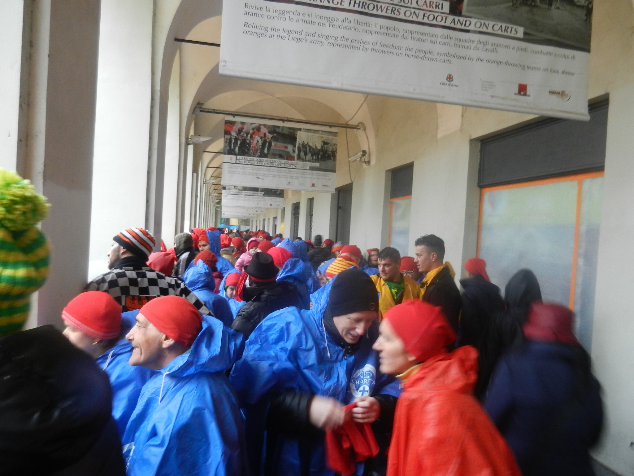 Domenica 7 febbraio 2016 abbiamo festeggiato insieme il carnevale ad Ivrea. Alle 11 abbiamo partecipato alla Messa in duomo e poi abbiamo pranzato nei locali delle Suore dell’Immacolata. Quest’anno il tempo non è stato dei più propizi, dopo mesi di siccità infatti è piovuto proprio il giorno di carnevale. Noi non ci siamo dati per vinti e temerari come sempre siamo scesi, mantelline indosso, ad assistere alla battaglia delle arance.