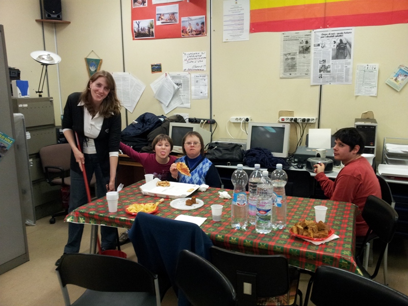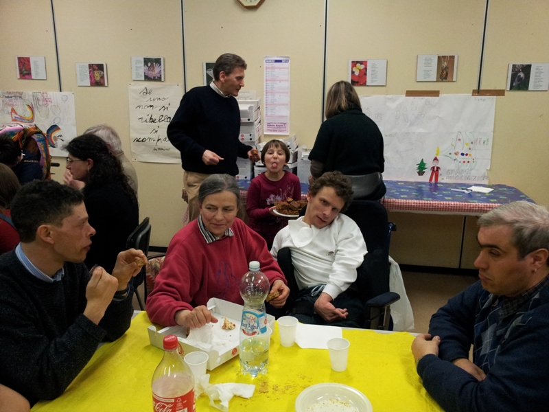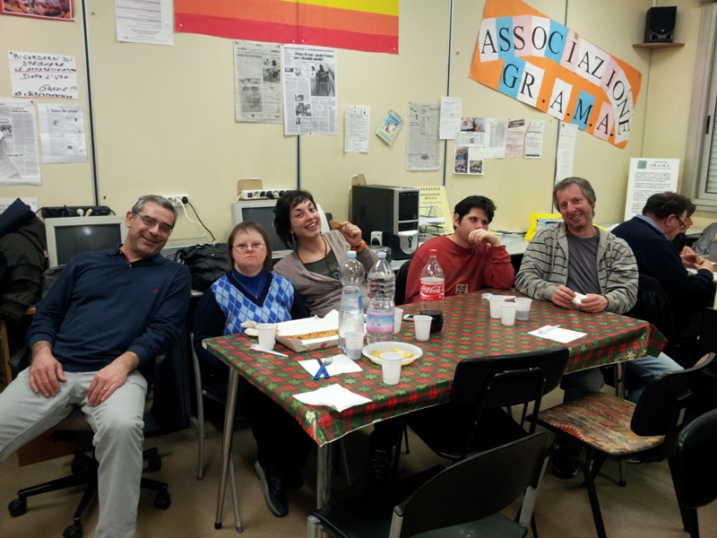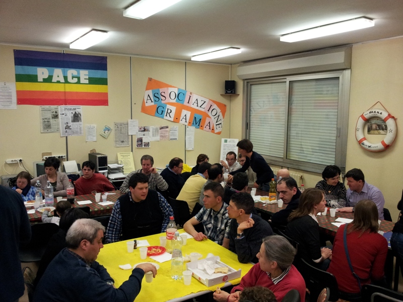 Ci siamo incontrati verso le 19.15 presso la sede della GRAMA, dove è iniziato l’allestimento del locale per la cena. Tutti si sono dati un gran da fare, e finalmente dopo una mezz’oretta siamo riusciti a recuperare tavoli, sedie e tovaglie per tutti. Contro ogni previsione il locale è riuscito a contenere tutti quanti e per la prima volta (che ricordi io) eravamo in 34!! Un numero mai visto e un bel segno di amicizia e di voglia di stare insieme. Verso le 8 sono arrivate le pizze e abbiamo iniziato a cenare allietati, come sempre, dai soliti Matteo e Michele e… pure dalla piccola chiara! A conclusione della cena abbiamo gustato una buonissima torta al cioccolato preparata da Stefania (figlia di Tina) e le bugie di carnevale offerte dalla GRAMA. Terminata la cena e la pulizia del locale, finalmente è iniziata la proiezione delle foto che ci ha regalato momenti davvero esilaranti. Ognuno ha potuto ritrovarsi immortalato in situazioni buffe e singolari, spesso catturate a propria insaputa. Verso le 23 tutti a casa felici e contenti per una serata divertente in compagnia.