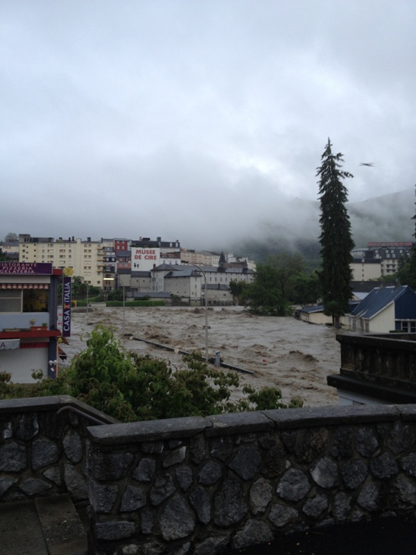 Purtroppo l’acqua del Gave ha continuato a salire nel corso della giornata, fino a sorpassare il livello di ottobre 2012. Alle 16 circa il Santuario è stato chiuso e alle ore 21 si è stati costretti ad evacuare anche il Salus in quanto l’acqua aveva raggiunto il trasformatore di corrente che alimenta tutta la struttura. Alle 22.30 tutti gli ospiti del Salus sono stati risistemati al Florance, giusto in tempo che anche il generatore è stato sommerso.