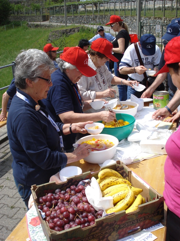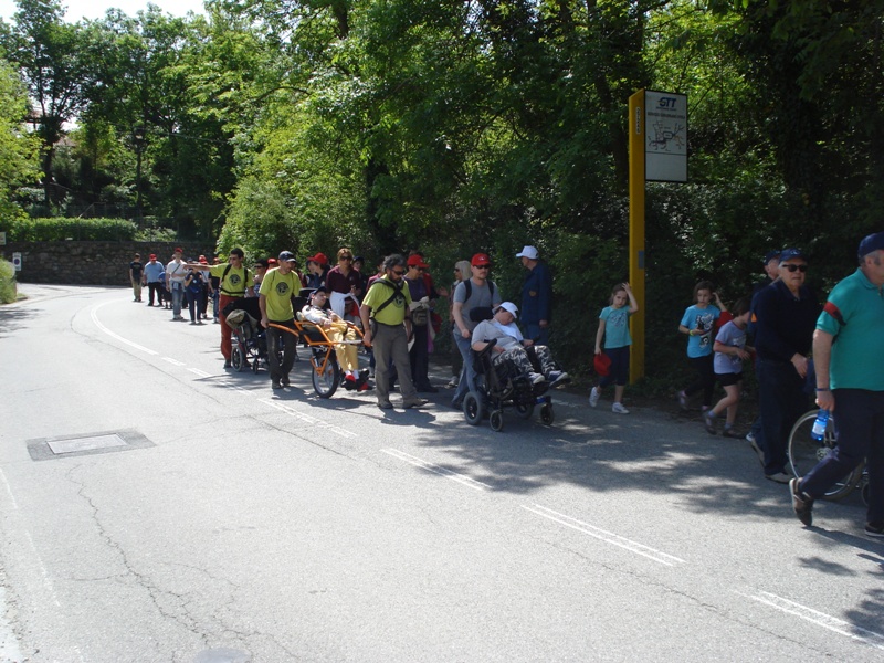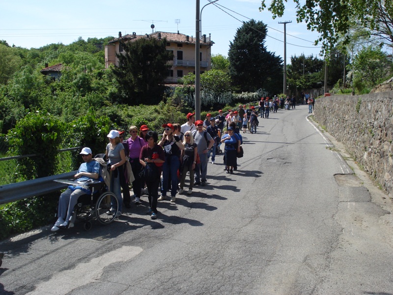 Partiti verso le ore 11 da Piazza Freguglia abbiamo percorso i primi passi alla volta del Lago Sirio in località del Comune di Chiaverano dove, accolti dal Sindaco, gli Alpini ci hanno preparato un primo rinfresco. Usuale dolce con i canestrelli preparati dalla Pro-loco di San Giovanni Canavese, frutta fresca e macedonia offerta dall’AVULSS e Pane e Nutella preparato dall’Associazione dei Volontari del Pronto Soccorso di Ivrea. Angeli custodi, oltre alla Protezione Civile degli Alpini di Chiaverano, la Croce Rossa Italiana e il CAI Sezione di Ivrea che con la Joelette, carrozzina per terreni accidentati, ha potuto accompagnare molti disabili alle Terre Ballerine, luogo altrimenti per loro inacessibile.