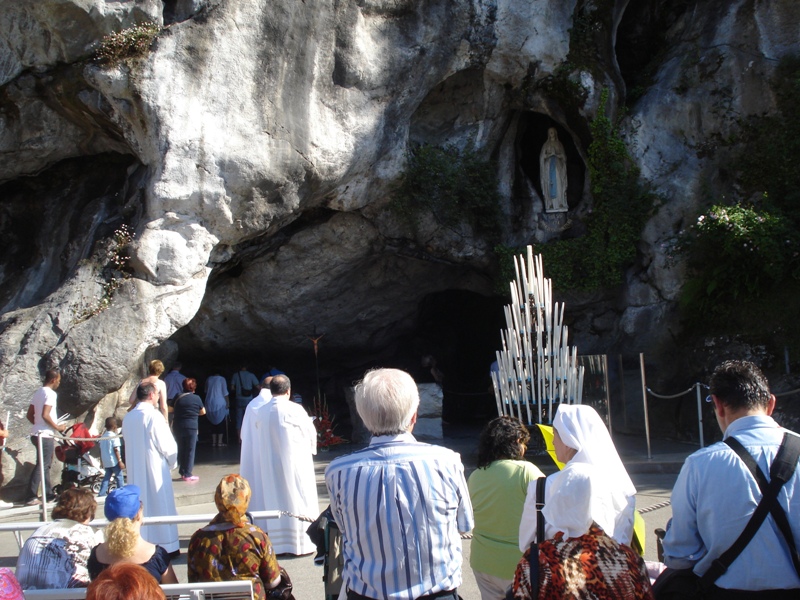 Secondo giorno all’insegna del bel tempo e del caldo torrido. Messa Internazionale al mattino con seguente Angelus recitato alla Grotta. Passi di Bernadette sotto un sole cocente che non ci ha permesso di effettuare la Processione Eucaristica fuori. Don Loris ha guidato l’Adorazione in un bel clima di preghiera e partecipazione.