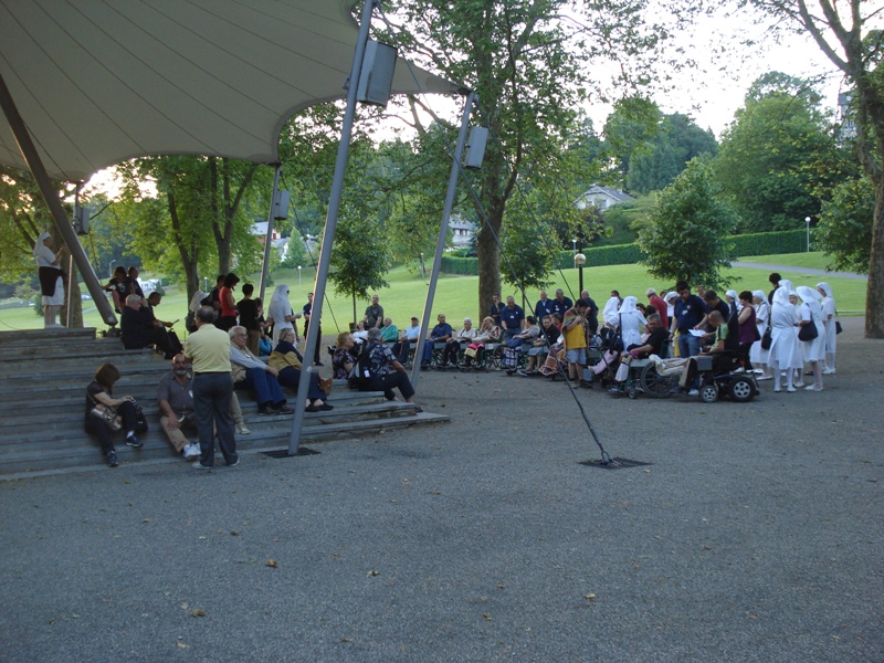 Neanche il tempo di finire e poi di corsa alla Grotta per recitare il Rosario delle 18 trasmesso da TV2000. Infine, in una serata chiara in cui solo la Luna si faceva vedere è stato fatto “Lourdes sotto le stelle”, preghiera/racconto delle apparizioni di Lourdes.